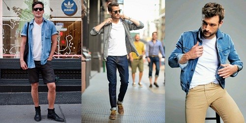 - Un toque más juvenil es llevar tu camiseta bajo una camisa de botones sin abrochar. También para una salida casual. (Tip: el mismo estilo funciona para las mujeres).
