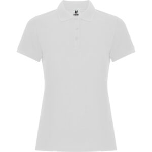 Camiseta polo de manga corta con 3 botones a juego en color perla, aberturas laterales, costuras del cuello cubiertas con cinta a juego.